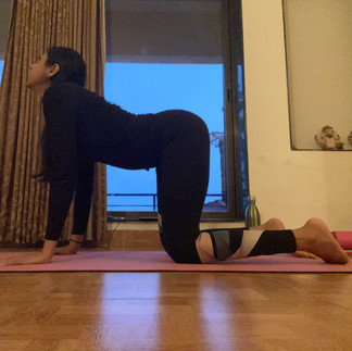 This asana gently massages your abdomen, and soothes the abdominal pain.